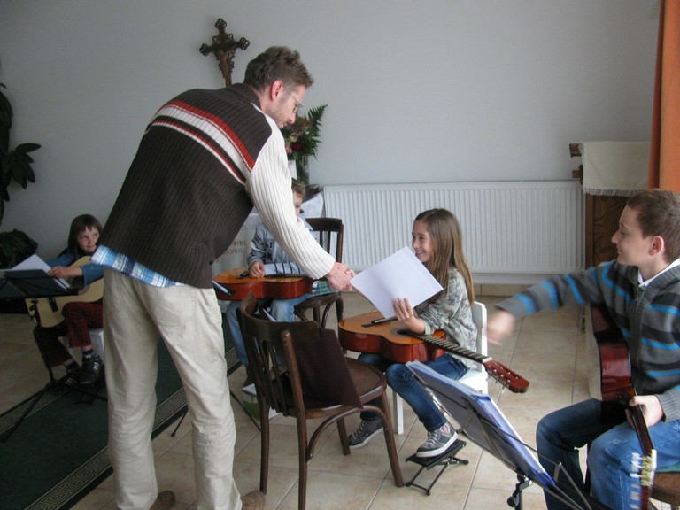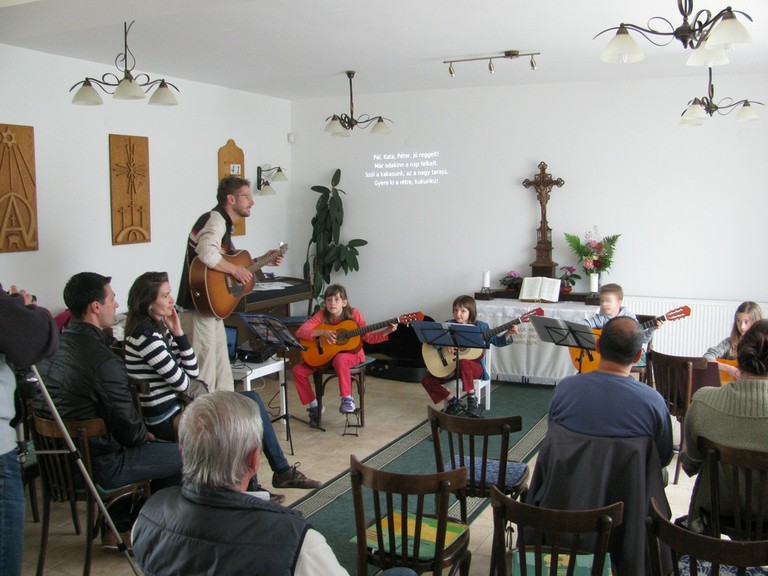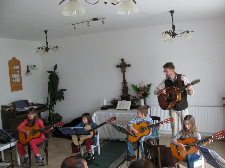 Május 30-án a sárbogárdi gyülekezeti házban gyülekezetünk gitársulijának öt kis növendéke adott ízelítőt azokból az énekekből és dallamokból, amelyeket a tanév során megismertek - a gyülekezet örömére és szüleik büszkeségére. A gitársuli tagjai a 2012/13-as tanévben: Bőjtös Benedek Árpád, Harmath Kitti, Kántor Ignác, Sándor Flóra és Szarka Tímea voltak.